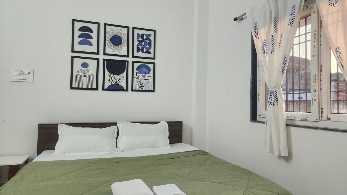 Habitación privada con aire acondicionado en un acogedor apartamento en Bodhgaya.