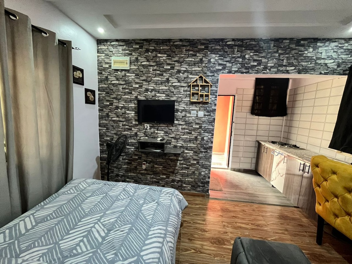 ¡Bienvenido a nuestro encantador apartamento de 1 dormitorio muy espacioso ubicado en el corazón de la vibrante Ibadan! Ideal para viajeros solitarios o parejas que buscan comodidad y conveniencia. El apartamento cuenta con un dormitorio bien equipado con una lujosa cama tamaño king. La sala de estar está amueblada con buen gusto, muy espaciosa para la relajación, con una televisión inteligente y wifi de alta velocidad. Una zona de cocina totalmente equipada permite una fácil preparación de comidas. Nuestro apartamento promete una estancia inolvidable. Esperamos tu visita