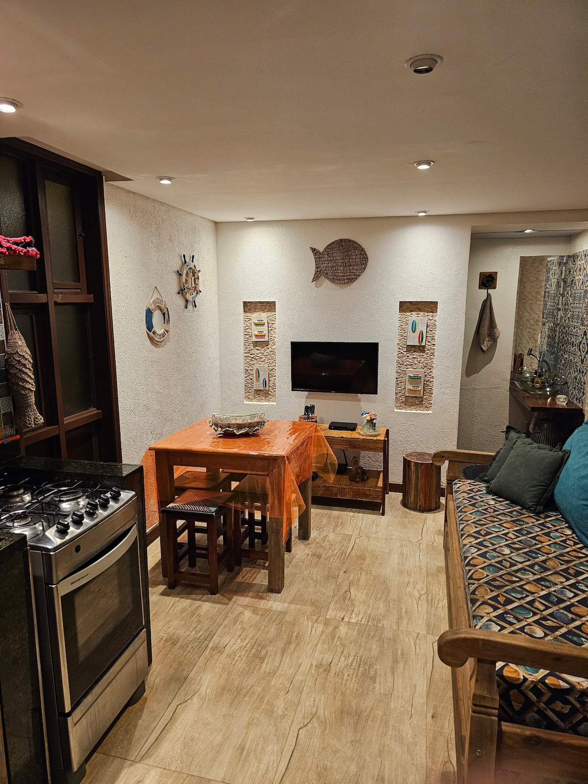 El apartamento Studio está completo, se encuentra en un condominio en medio de la Mata Atlántica. El apartamento Studio cuenta con cocina completa, con horno, aire acondicionado, TV con Sky (FUN HD 2021), wifi (en el alojamiento) ¡un delicioso balcón! El baño es espacioso y la ducha es una delicia. El espacio está completamente amueblado y bien equipado con electrodomésticos y utensilios básicos de cocina. ¡Tiene dos camas dobles queen y un sofá cama doble! Te sentirás en medio de la mata atlántica pero casi a la orilla del mar:)