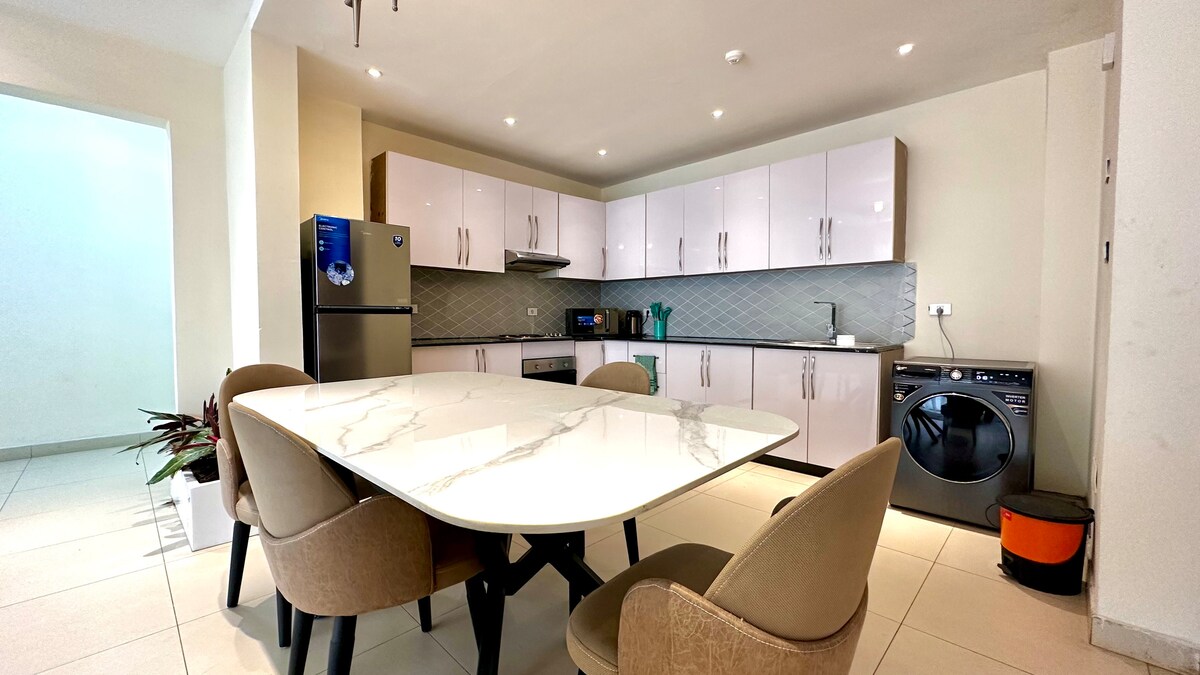 Disfruta de una experiencia elegante en este lugar céntrico. Alójate en este céntrico apartamento de 3 dormitorios en Bole Brass, Addis Abeba. Cerca de restaurantes, tiendas y atracciones, es perfecto para familias, parejas o personas que viajan solas. Disfruta de un espacio amplio y luminoso con una cocina totalmente equipada, wifi rápido, lavadora y seguridad las 24 horas. Además, los sistemas de energía y agua de respaldo garantizan una estadía sin complicaciones. Disfruta de la comodidad y la conveniencia de reservar tu estancia hoy mismo.
