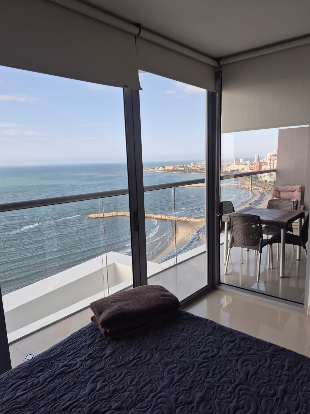 NO VISITORS OR GUESTS ALLOWED !!! NO PETS, ALL Guests need to provide ID numbers, nationality, and birthday 48 hours prior to arrival for registration in H2. Our modern, high end 3 bedroom and 3 bathroom apartment is centrally located in bocagrande - best corner unit . All bedrooms enjoy views of the ocean or walled city. Guests can enjoy sunrise or sunset on its stylish and elegant 30 square meters balcony. We provide cleaning services to maintain premium quality lodging experience.