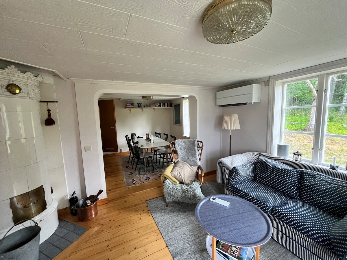 Bienvenido a alquilar nuestra increíble casa de campo justo en el agua. En los terrenos hay dos cabañas. Cabaña 1: Edificio principal con sala, TV, chimenea, baño con ducha, cocina con nevera, estufa, horno y microondas. Una cama individual, así como una cama doble en el loft para dormir y una cama individual en la sala de estar. Cabaña 2: un sofá cama y una litera. Sauna, ducha e inodoro. Refrigerador, congelador, lavadora y equipo de ejercicio. En la parcela hay un gran cubierta, un cubierta más pequeño, su propio embarcadero, así como una chimenea. Saludos, Emir y Sofía