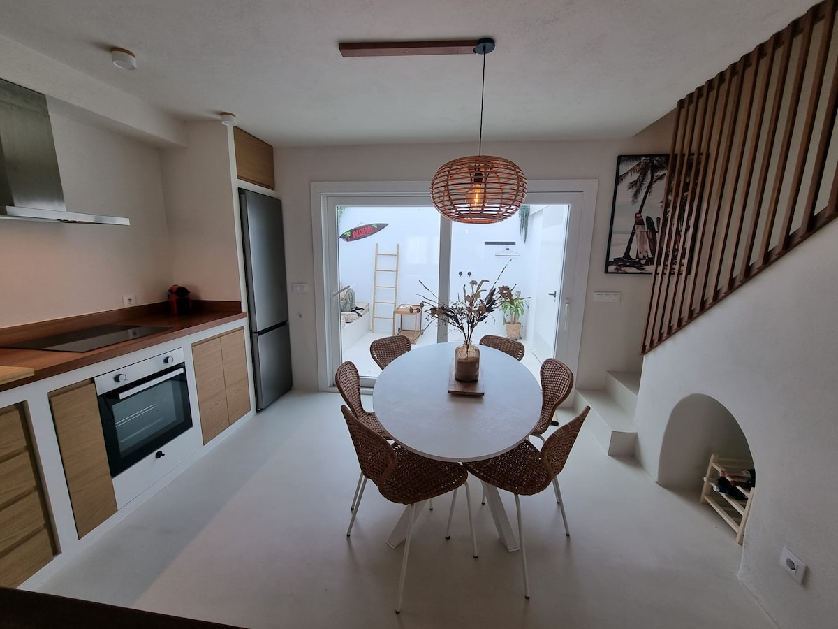 Estancia inspirada en la isla a solo 5 minutos de la playa Relájate en este refugio privado y soleado con piscina, palmeral y una encantadora cocina al aire libre con horno de leña. Materiales naturales, estilo minimalista y ambiente tranquilo, todo a solo 5 minutos a pie de la playa. Perfecto para parejas, familias o cualquier persona que quiera relajarse con estilo.