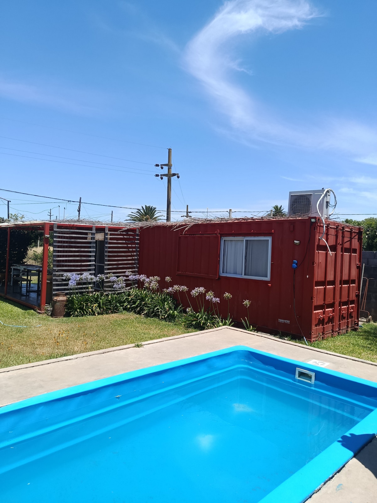 El Conteiner Rojo es un lugar ideal para quien busca desconexión, descansar y relajarse. Un lugar tranquilo, privado y confortable. Una habitación con cama matrimonial y un sofá cama en el living. Todas las comodidades, aire acondicionado, TV Smart con aplicaciones, equipo de música, pileta con ducha exterior, fogonero y parrilla. Ideal para parejas o familias.