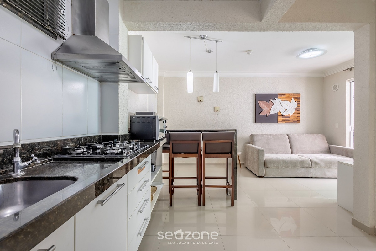 Moderno y acogedor apartamento ubicado en Residencial Sunny Flats a aproximadamente 400 metros de la playa de Bombas en Bombinhas. Cuenta con una hermosa área exterior con alberca en terraza, área gourmet, fogata, sala de juegos, espacio para niños. Cuenta con sala y cocina integradas con mesa de comedor, baño de visitas, 1 dormitorio con aire acondicionado, sofá cama en el salón y ofrece balcón con barbacoa privada.