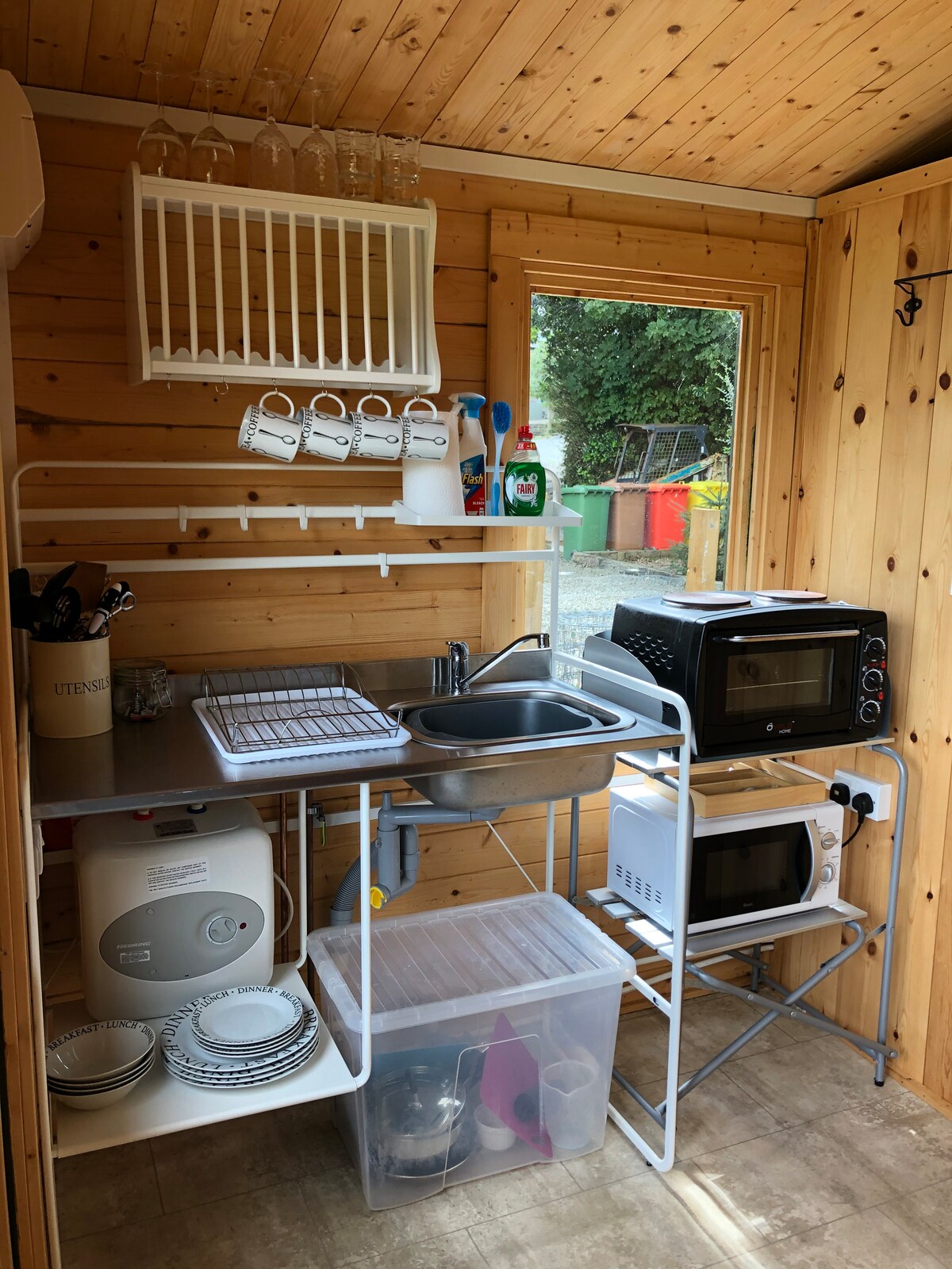 Restaurada a mano con mucho cariño, esta cabaña de madera de un dormitorio se encuentra enclavada en tu propia porción privada de felicidad natural aislada. Experimenta el canto de los pájaros y la naturaleza mientras disfrutas de las vistas panorámicas de la impresionante campiña de Pembrokeshire. La casa de campo forma parte de una antigua granja lechera de 9 acres. Vivimos en la granja de 200 años de antigüedad de al lado. Disfruta de vino en la terraza mientras contemplas la puesta de sol, relájate después de un día de exploración en la bañera con tapa enrollable o pon los pies junto al fuego de leña.