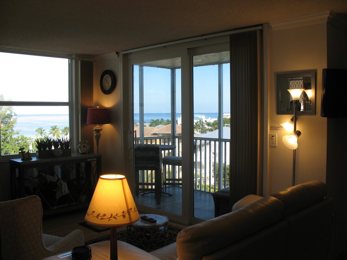 Disfruta de la vista al mar y las tranquilas puestas de sol... justo desde tu balcón ubicado en el quinto piso... ¡mientras bebes tu bebida favorita! Alójate en este encantador estudio de 1 dormitorio y disfruta de las atracciones cercanas en Bonita Springs, Estero, Naples y Ft. Myers. Con una cama tamaño king y un sofá cama, permite que 4 personas duerman. ¡Acogedora cocina, comedor/sala de estar y el encantador balcón para disfrutar de las vistas al mar! A poca distancia a pie del océano. ¡Perfecto para una escapada romántica a la playa!
