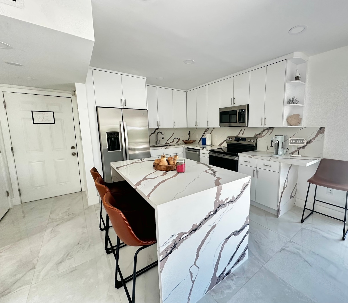 Slack Tide Cove Bienvenido a Slack Tide Cove, un impresionante refugio frente al mar de 3 dormitorios y 2 baños en el corazón de Marathon, Florida. Esta nueva construcción está elegantemente decorada con un tema costero, que ofrece la mezcla perfecta de lujo y relajación. Disfruta de impresionantes vistas de Boot Key Harbor desde la piscina o el balcón, y disfruta de 50 pies de muelle de aguas profundas con una estación de limpieza de peces para la captura de tu día.