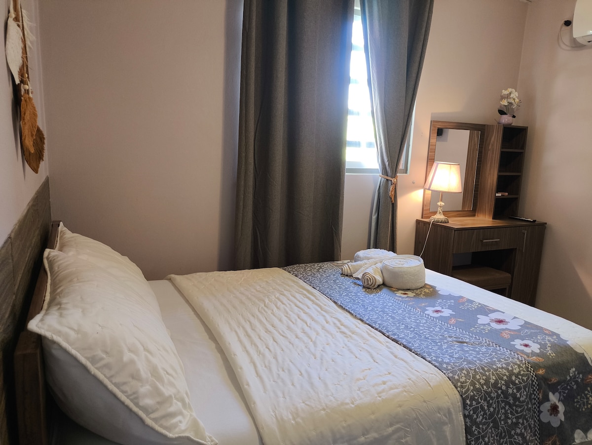 Disfruta de la sencillez de este alojamiento tranquilo y céntrico. Diseñado para estar comodos, una cama queen "Murphy", la posibilidad de una mesa de patas extensibles donde trabajar. La misma se puede sacar afuera y disfrutar comer al aire libre. A unos 200mts de medios de transporte, o caminar 2km hasta el centro de la ciudad. A pasos de supermercado, estación de servicio, mercado gourmet, cafeteria, restaurantes y pasteleria. Tiene wifi de fibra optica, TV y lugar para el auto afuera.