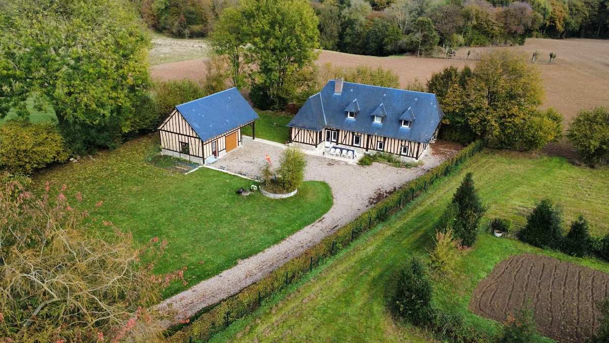 Nuestra casa se encuentra al lado del bosque, a 20 minutos de la bonita ciudad de Ruan, a 30 minutos de Neubourg, Bec Hellouin y el lago de Poses (equipado para nadar y juegos de agua), a 50 minutos de Honfleur, Deauville, el jardín de Monet en Giverny y 1 hora de París. Bien situado para visitar tanto las costas del desembarco como las playas de Normandía. En cuanto a las actividades de ocio, dispone de dos bicicletas, una cancha de petanca y futbolín. Posibilidad de tener material para bebés bajo petición.