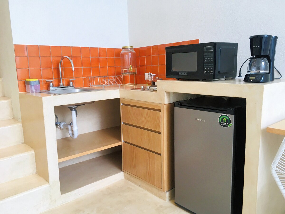 Este es un lindo loft para dos personas ubicado a pocos pasos del Centro Histórico de San Luis Potosí. Tiene entrada independiente y cuenta con lo que necesitas: cocina equipada, baño completo, WiFi, pantalla de TV, cuenta de Netflix, un pequeño patio privado con hamaca, amenidades, una gran iluminación ¡y mucha inspiración!