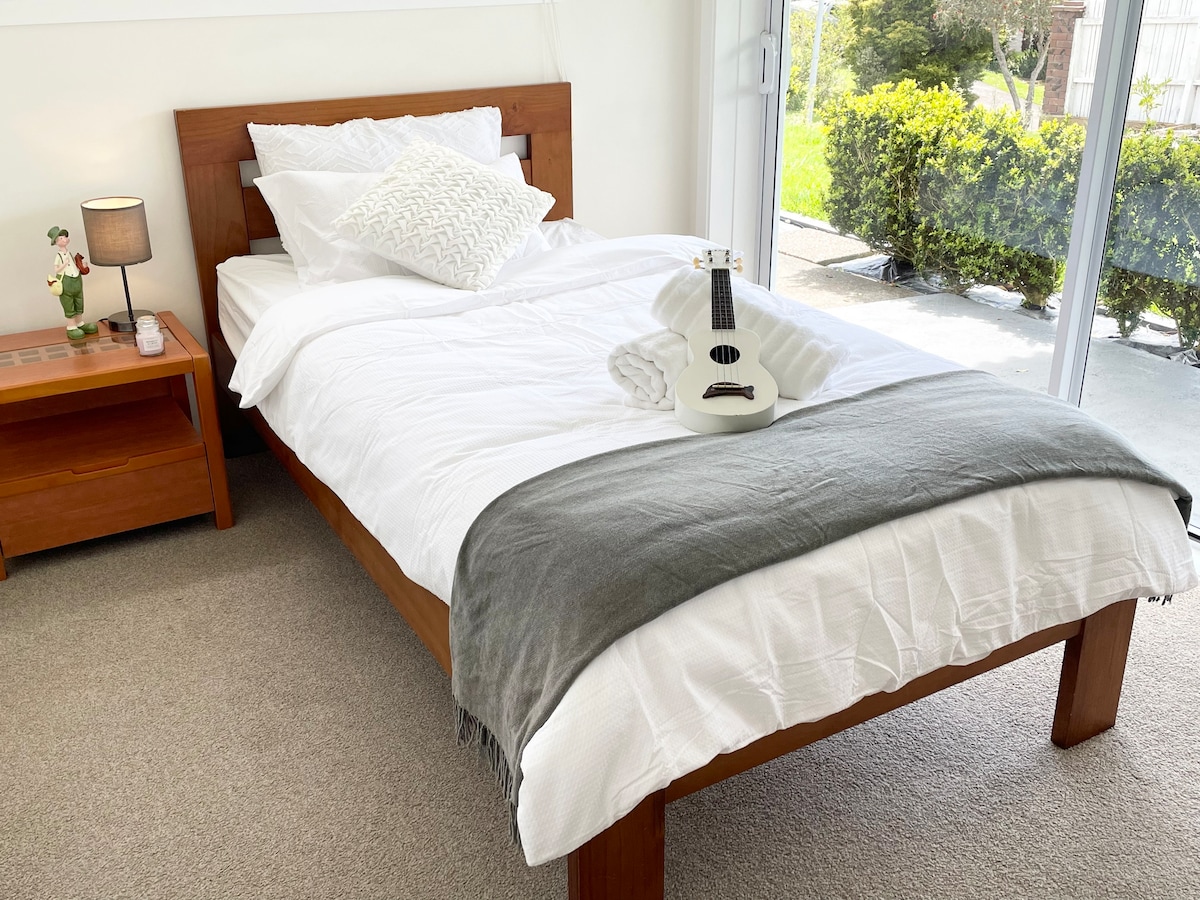 5 min walk to the Howick village where shops, bars, eateries and Saturday Market located. 4 local beaches are just 10 min drive or bus to the ferry(sail to the AK CBD )or bus into towns. Walkable distance to Macleans College and Owairoa school. Fully fenced with auto front gate, own entrance and garden. This quiet and spacious unit has got plenty for a relaxing holiday. Good for couple or solo, business traveler or family. Check-in time: 3pm to 10pm