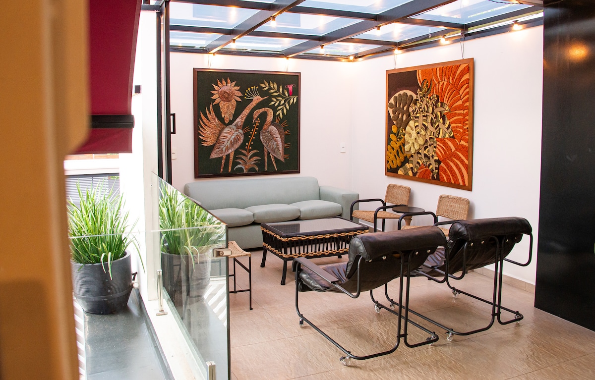 Relájese con toda la familia en este alojamiento tranquilo, ubicado en el jardín paraíso en Botucatu, al lado de la granja Lageado, cerca de la panadería, el mercado y el centro de la ciudad. Hay una parada de autobús en la esquina del edificio.
