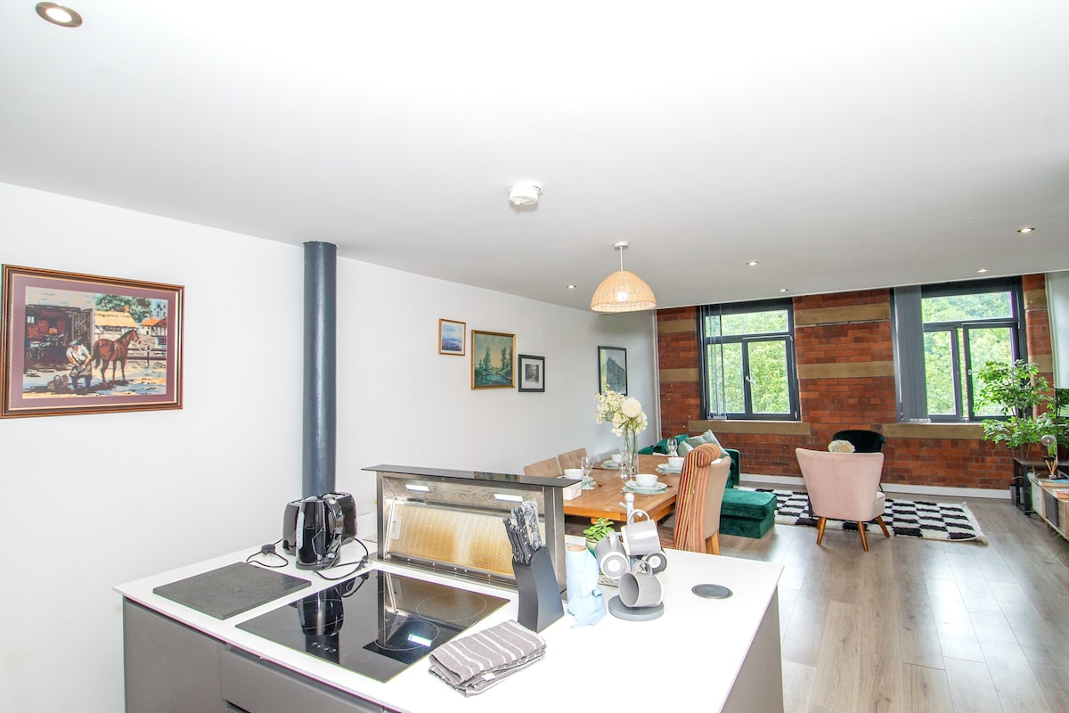Entra en este elegante loft urbano en un edificio cerrado con un espacio de estacionamiento seguro. Un espacio de estar de planta abierta donde el diseño contemporáneo se encuentra con el encanto industrial. Consulta con el coanfitrión si se requiere una estadía más larga. Se puede aplicar un descuento adicional para los trabajadores contratados que requieran una base semanal. TheWorks está a 8 minutos a pie de las estaciones de tren The Interchange y Forster Sq. A solo 14 minutos: centro de Leeds. A 6 minutos a pie del centro comercial Broadway, Darley St Market y Forster Sq Retail Park.