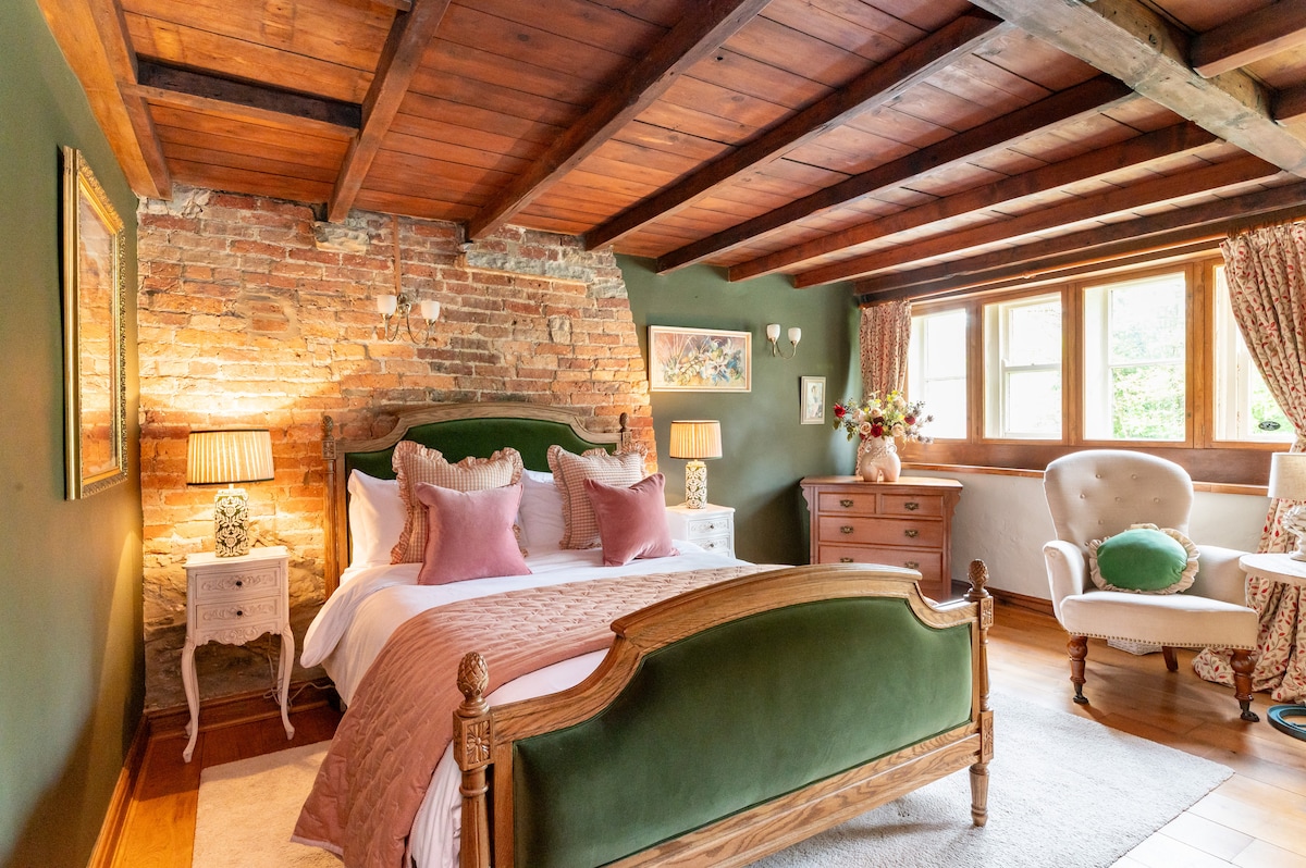 El alojamiento de la planta baja está elegantemente decorado con un gran salón comedor de planta abierta que cuenta con paneles de pared pintados de estilo jacobeo como telón de fondo impresionante. Las ventanas con parteluces de piedra, los techos con vigas, los suelos de roble y las puertas dan una sensación de encanto rústico a la estructura del edificio y, sin embargo, cuenta con todas las comodidades modernas. Hay acceso a jardines arbolados y ajardinados con vistas de largo alcance a la campiña circundante y una zona privada para sentarse y disfrutar de la ubicación.