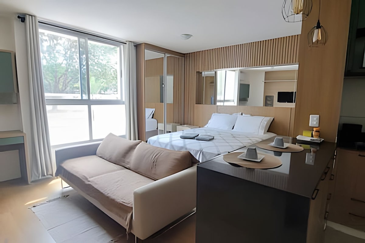 🏡 Estudio en planta baja – 16 m² en el suroeste (Brasilia) Compacto, moderno y funcional. A 10 minutos de Esplanada y el aeropuerto y al lado de Sugarloaf. ✨ Aire acondicionado inverter, microondas, freidora de aire, cafetera, plancha, sandwichera, secador de pelo, minibar de 120 l y cama individual. 🛏️ Ropa de cama, toallas y wifi de 500 Mega incluidos. ¡Todo pensado para que tengas la mejor estancia posible!