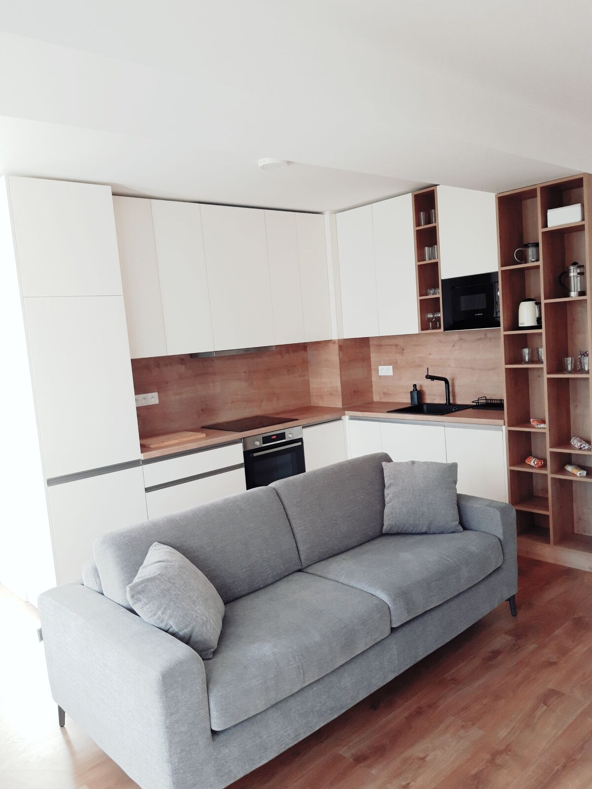Bratislava has two faces - the modern city and the historic part. Our apartment is located in the latter, in a brick building from 1950s. The house itself carries the character of old times, while apartment has just undergone a full renovation in 2025. Centrally located, you are few minutes away from all major attractions, reachable by foot or public transportation. Nearby department store Central gives you the comfort of wide opening hours for groceries, shopping, fitness with a swimming pool.
