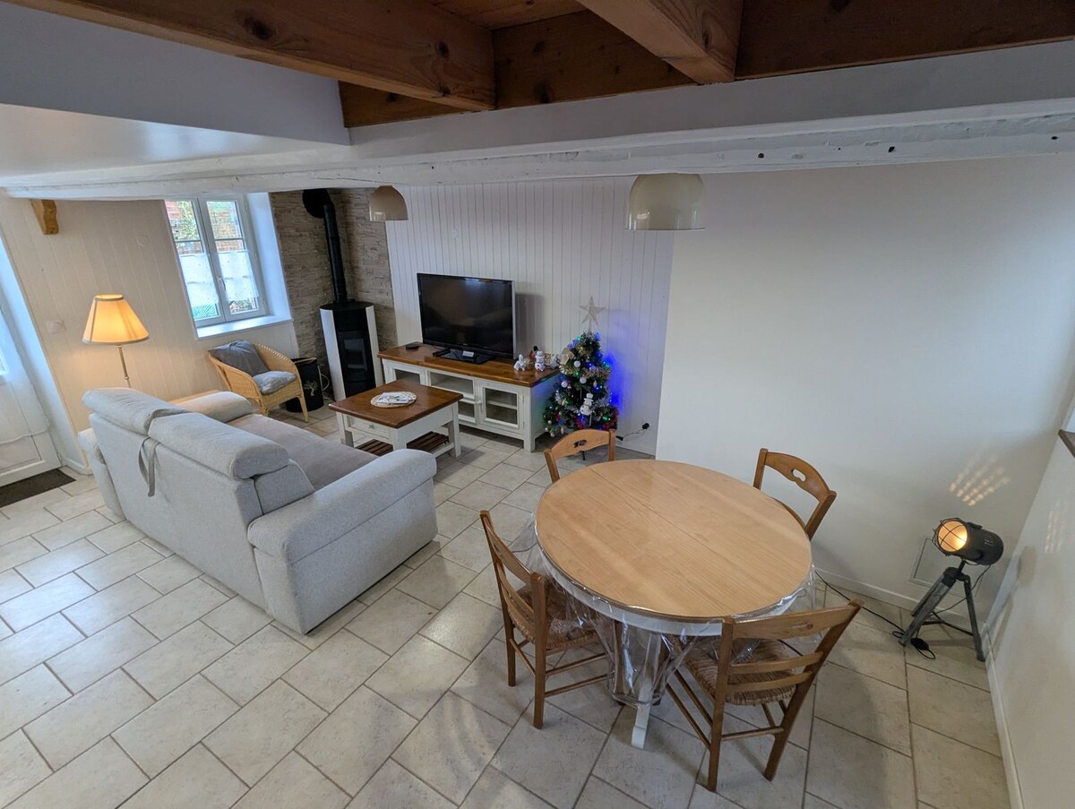 Encantadora casa con entramado de madera de 60 m² situada en pleno campo. Lugar ideal para reponer energías en un entorno tranquilo y verde Decoración rústica y equipamiento muy completo Las camas están hechas a su llegada Posibilidad de llegada autónoma Tiendas y restaurantes accesibles en coche Alojamiento especialmente equipado para estancias de unos días a varios meses Nuevo: La casa ahora está conectada a la fibra, lo que permite trabajar en buenas condiciones