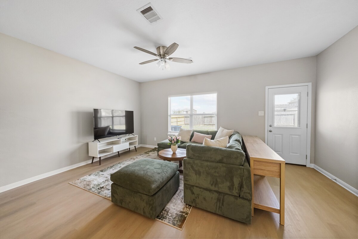 Encantadora y espaciosa casa de tres dormitorios totalmente amueblada en Pearland, Texas. Un barrio seguro, tranquilo y familiar, cerca de FM 518 y FM 2351, y muy cerca de Friendswood. Recientemente remodelado con muebles actualizados. Una cocina totalmente equipada, wifi de alta velocidad, televisores 4K, transmisión de Amazon y Netflix, Roku y canales locales y mucho más. Esta propiedad está superlimpia y bien ubicada en el sureste de Houston. Practicamos técnicas de mitigación de COVID-19 según las pautas de los CDC y Airbnb (incluidos los purificadores de aire HEPA).