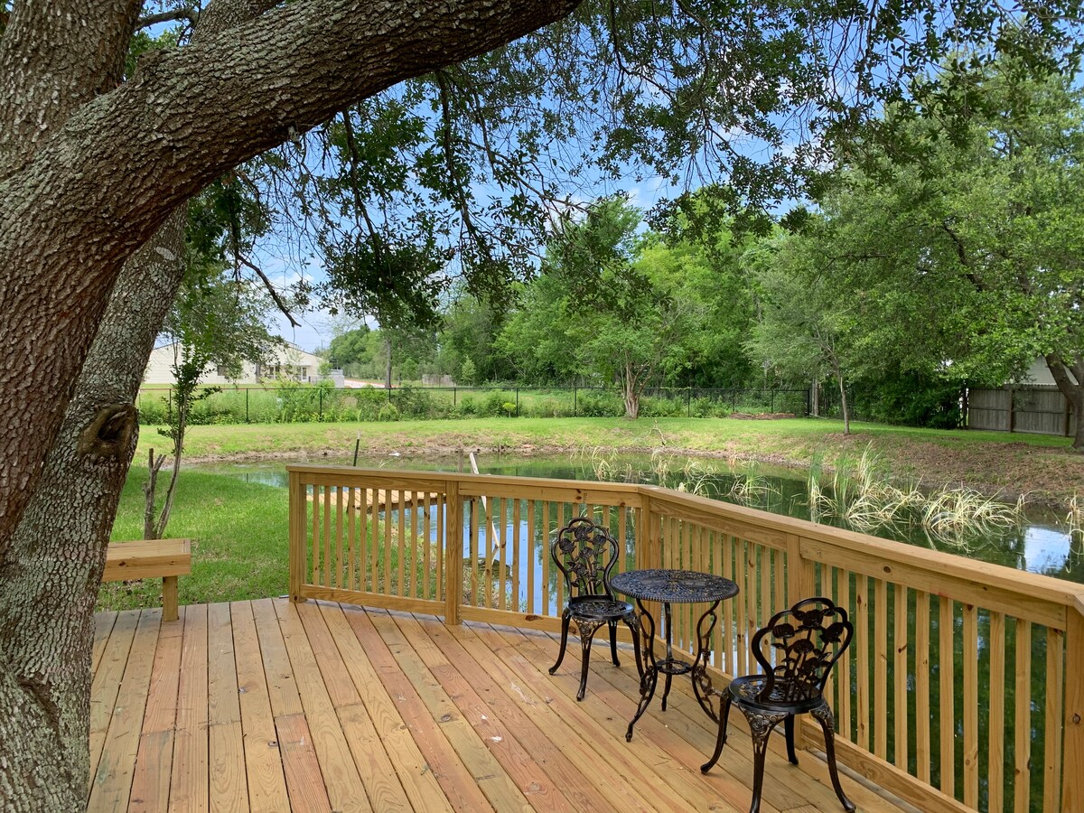 Escápate a la naturaleza en una acogedora cabaña totalmente amueblada. La cabaña cuenta con una cama tamaño queen, un futón y un loft con 2 colchones individuales, junto con un baño completo y cocina. La propiedad vallada de 1,5 acres ofrece una amplia zona de césped con un estanque, área de barbacoa, pozos de fuego, terrazas cubiertas y jardín. A los niños les encantarán las hamacas, el bote de remos y los columpios. Ubicado en una zona tranquila en el centro de Pearland, este refugio ofrece el encanto de vivir en el campo justo en la ciudad. La propiedad es apta para mascotas.