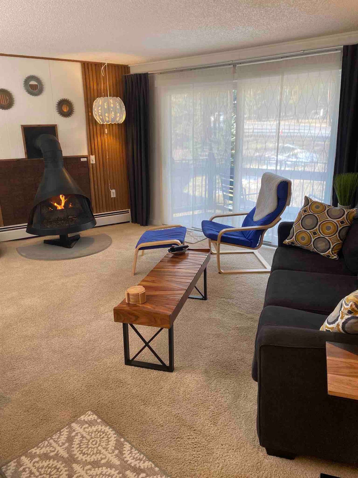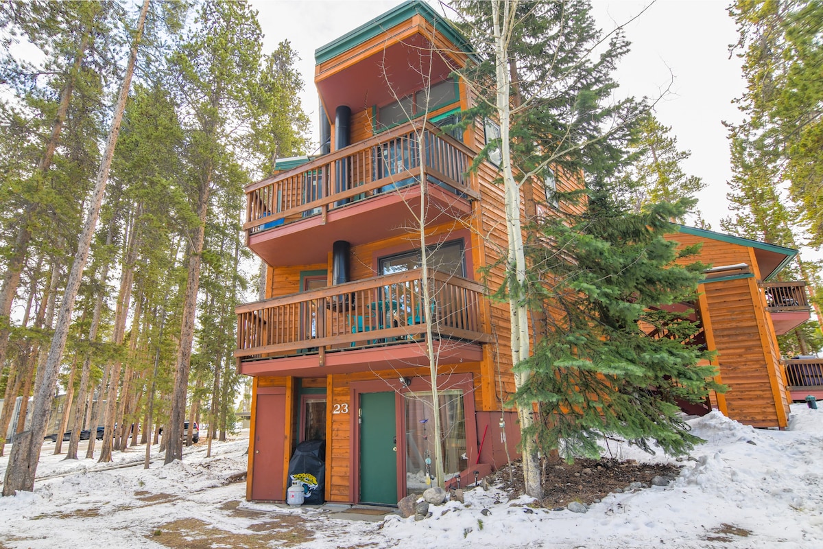 ¡Apartamento bonito y acogedor enclavado en los pinos! Este apartamento limpio y actualizado de un dormitorio tiene un plano de planta abierto con 3 camas separadas, chimenea eléctrica y terraza privada con vistas a los pinos lodgepole con parrilla de gas. Cocina completa. A dos manzanas de la base del Peak 8 + en la ruta de autobús gratuita. Acceso al centro de la ciudad en autobús urbano gratuito, a pie o en coche. Accede a Cucumber Gulch para hacer senderismo al final de la calle. Al lado del centro nórdico. Dos plazas de aparcamiento sin asignar. ¡Vibraciones de esquí retro!