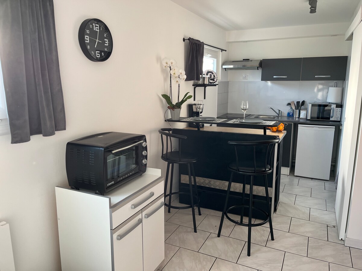 Luminoso apartamento de 60 m2 totalmente reformado. Habitación con cama de 160, sofá cama en la sala de estar, televisión, cocina equipada, baño con ducha italiana. Alojamiento ideal para 2 a 4 personas. Centro de la ciudad y comercios cerca. Cerca del museo de los refugios, la basílica, el aeropuerto Albert-Meaulte y la empresa Airbus. Servicio de taxi disponible para traslados a estaciones de tren, aeropuerto o visitas a lugares turísticos con reserva previa. Se proporcionan sábanas y toallas.
