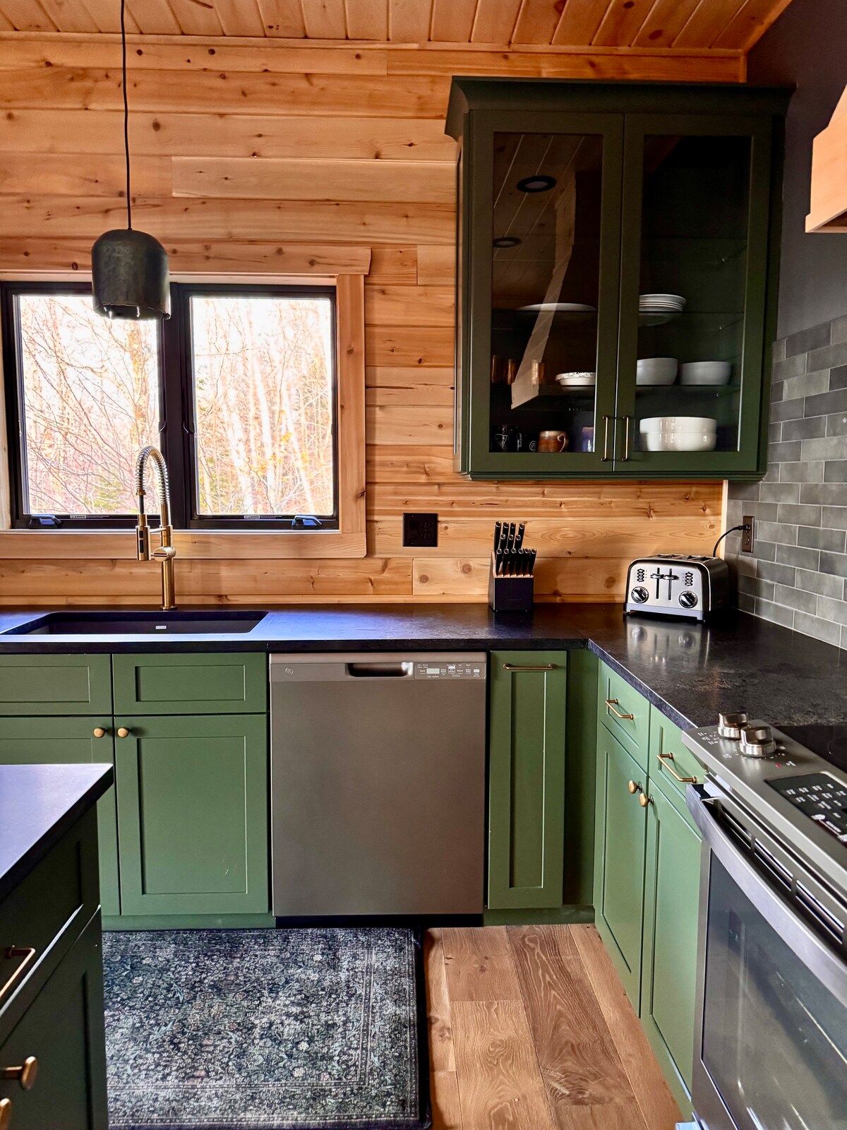 Casa única inspirada en una yurta con escalera de caracol, acogedor dormitorio principal, baño de temática rústica, estufa de leña y cocina moderna con electrodomésticos de acero inoxidable. Pista de patinaje sobre hielo de temporada 25x45, bañera de hidromasaje, chimenea de piedra, playa privada, gran terraza y aire acondicionado central. Lugar de vacaciones perfecto con remontes a 1 milla de distancia, senderos para caminar y servicios como Keurig, Instapot y TV montada en la pared con servicios de streaming. Acceso a Moose Lodge and Cabins con paseos frente al río, pesca y vida silvestre. ¡Un verdadero creador de recuerdos!