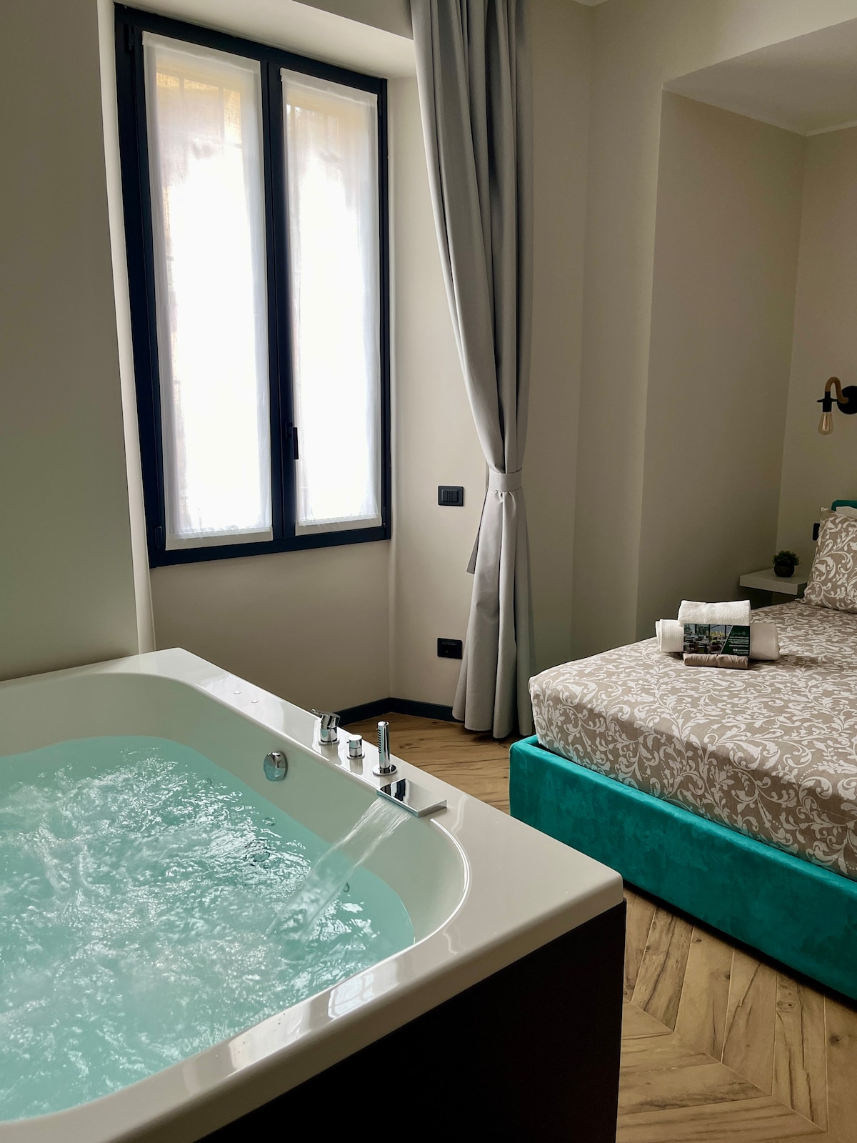 Estas suites están amuebladas con un estilo inconfundible para tu estancia relajante, cuenta con un jacuzzi doble, SAUNA PRIVADA, TV vía satélite, WIFI, minibar y las comodidades que necesitas para aprovechar al máximo. Estás en el corazón de la ciudad, ubicación perfecta y solo tienes que pensar en disfrutar de tu tiempo. No hay ningún otro alojamiento en la ciudad de Como diseñado para estar perfectamente a pocos pasos de todo, a pie y con el jacuzzi y las comodidades de esta suite.