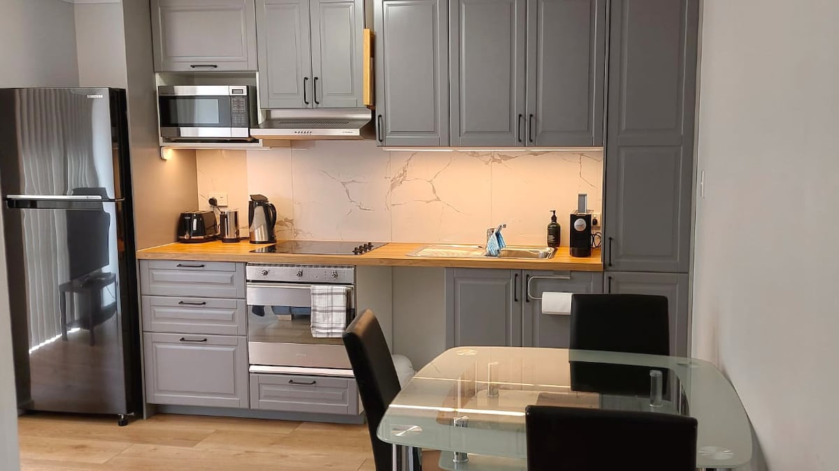 El estudio es un apartamento de 1 dormitorio luminoso, limpio, espacioso y elegantemente decorado en el nivel inferior de nuestra casa, dos pasos arriba, por lo que no es apto para discapacitados, ideal para parejas, (lo sentimos, no es apto para niños). Hay una cocina americana bien equipada, un gran diván de esquina, una cama tamaño queen con la parte superior acolchada, un romántico dormitorio a la luz de las velas, aire acondicionado de ciclo inverso, wifi, una gran televisión de pantalla inteligente con dispositivo de transmisión Chromecast para ver Netflix, Stan o cualquier plataforma que utilices. Barbacoa privada.