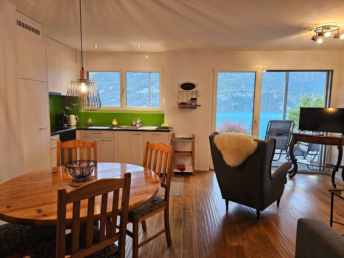 Este elegante apartamento, situado en lo alto del lago Brienz, tiene capacidad para 4 personas. Plazas de aparcamiento incluidas. •Póngase en contacto con nosotros para organizar la recogida y entrega gratuitas desde la estación de tren de Brienz.