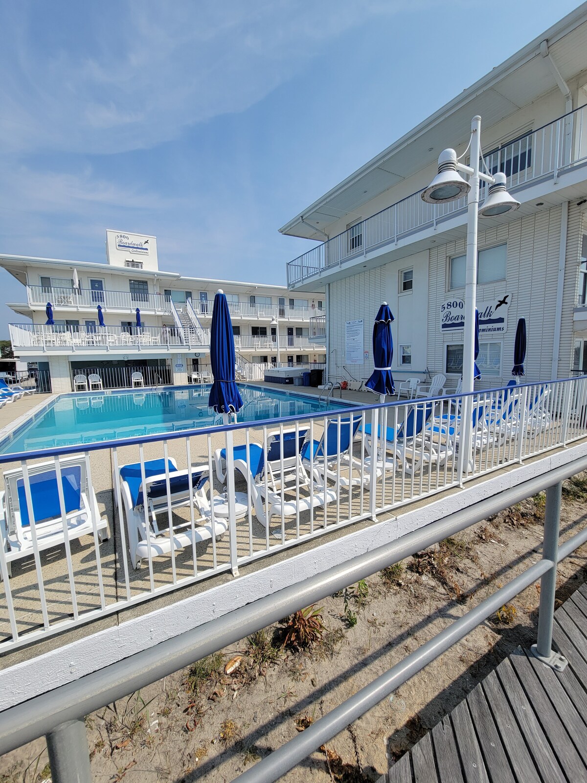 *Estancia mínima de 2 semanas* ¡Este apartamento ESTUDIO tiene la ubicación perfecta! Unidad final, piso inferior y espacio del patio con sillas altas. Perfecto para parejas o 2 adultos/2 niños. A pocos pasos de la playa y una piscina relajante Cafetería y heladería, desayuno, licorería, CVS y pizzería justo sobre Dorset Ave. Puente. Acme 1,5 millas Lugares que puedes visitar: Casinos de AC Margate Ocean City Wildwood Cape May Enfermeras de viaje: AtlanticCare Medical Center 3,2 km Shore Memorial Hospital a 11,2 km
