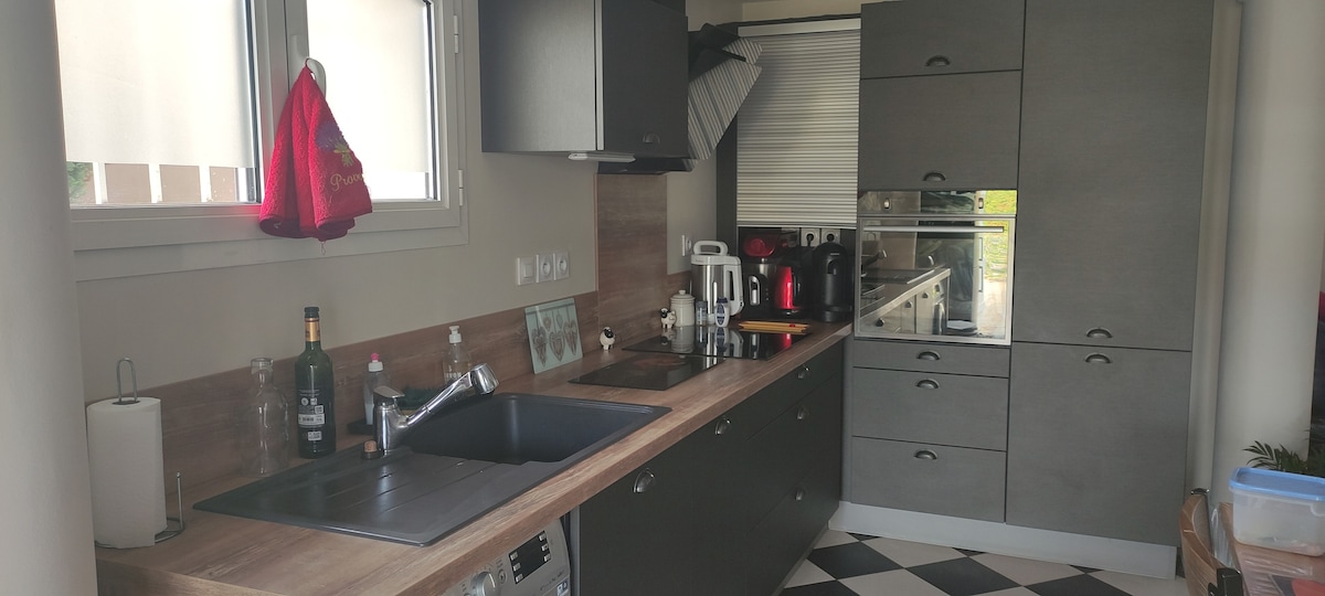 En el corazón de Brindas, venga a disfrutar de la tranquilidad de esta bonita T2 de 32 m². A 20 minutos de Lyon y al pie de los montes del Lyon. Cerca de todas las tiendas (a menos de 2 minutos a pie) , entre la ciudad y el campo. El alojamiento: Salón con sofá cama (2 plazas) TV y vestidor. Cocina equipada con horno, nevera, congelador, placas de inducción, microondas, cafetera, hervidor de agua, tostadora... Habitación con cama doble (140x190), colchón con memoria de formas, vestidor y escritorio. Baño en la habitación.