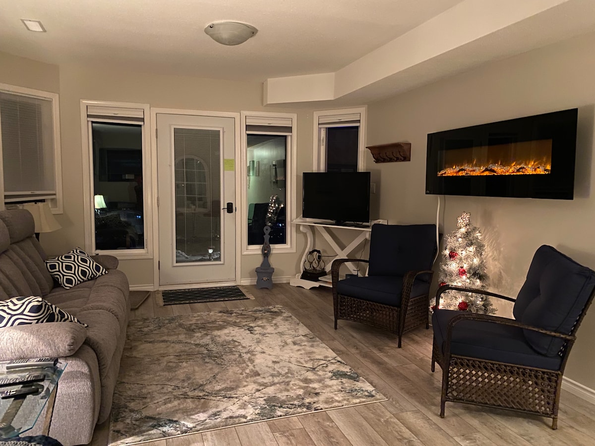 A pocos pasos del centro de Canmore con impresionantes vistas de montaña de 180 grados. Perfecto para familias y parejas. Totalmente amueblado y bien equipado, con camas tamaño queen de lujo, lavadora/secadora en la suite, sofás de cuero, TV de pantalla plana, chimenea de gas Rundle Rock y barbacoa de gas. Nuestros huéspedes también tienen acceso al gimnasio, la piscina cubierta, la piscina para niños con tobogán acuático y la bañera de hidromasaje interior/exterior en el edificio con al lado. Pase de Banff Park gratuito y puestos de estacionamiento subterráneo con calefacción reservados.