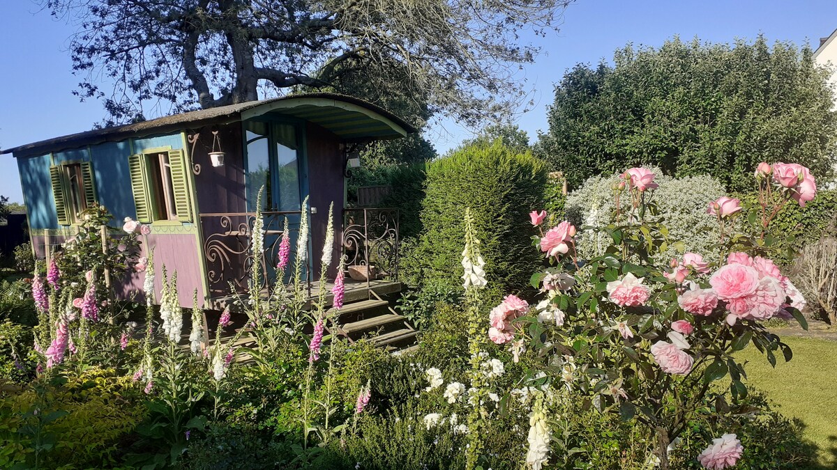 L'authentique "Roulotte Gitane" avec sa terrasse privative, et vue sur un des plus anciens manoirs bretons, vous accueille pour une immersion paisible dans un parc arboré, fleuri et clos, à proximité du Lac au Duc, de la voie verte et du circuit des Hortensias. Avec un lit double, une table et deux chaises et pour votre confort d'un espace sanitaire attenant(douche,toilettes sèches). Vous disposerez d'une cuisine d'été. Le linge de lit, nécessaire de toilette sont en supplément (20€).