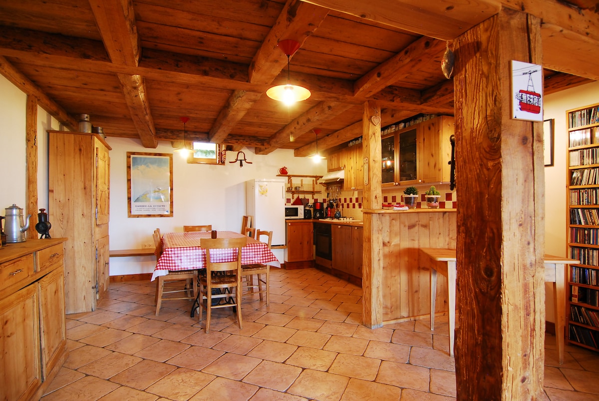 Encantador chalet antiguo de madera y piedra con vistas al Mont Blanc