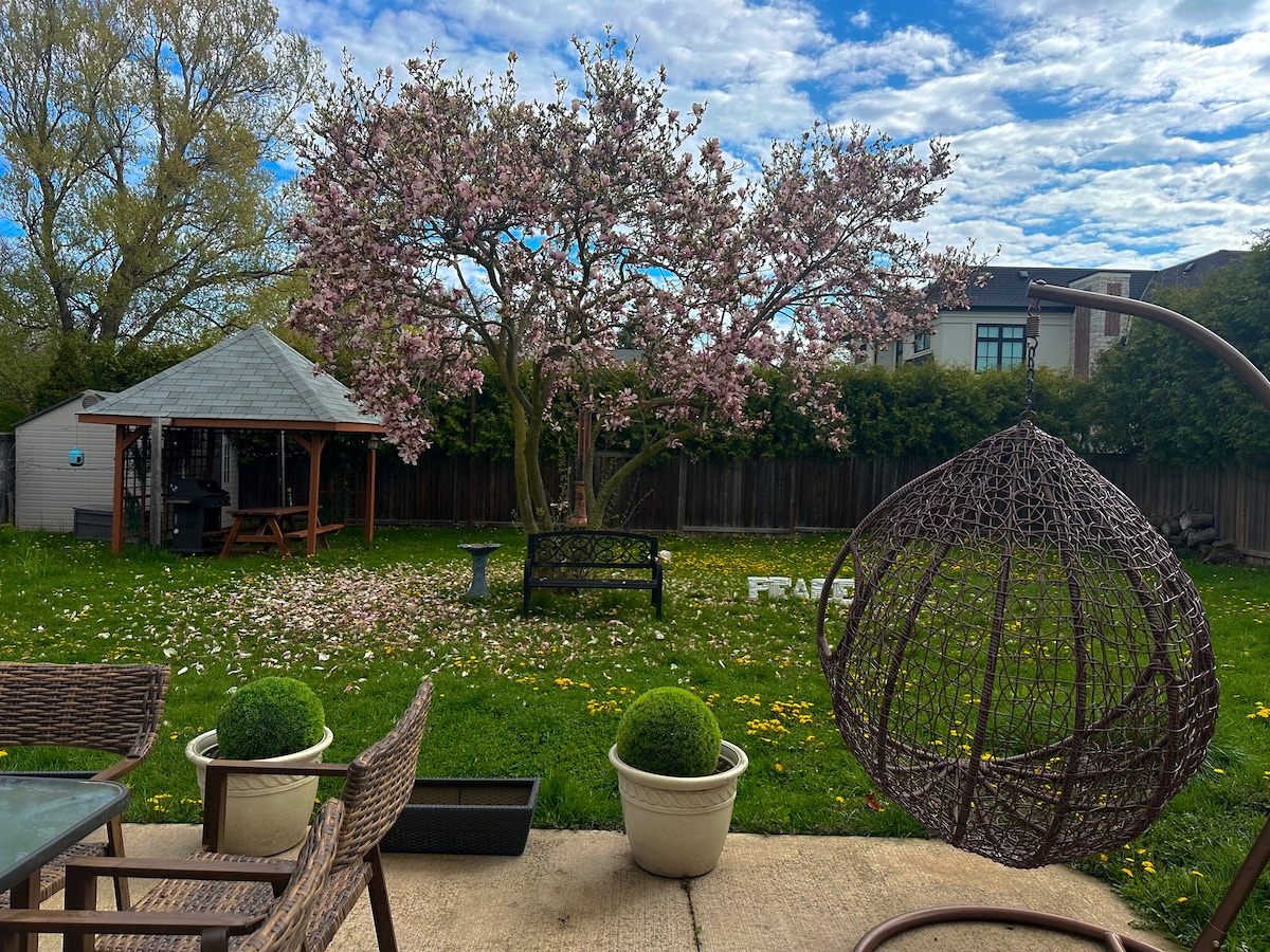 Our guest suite is licensed by Town of Oakville & 1 BLOCK AWAY FROM THE LAKE. New Flooring, Luxurious and spacious suite with ABOVE GRADE WINDOWS, heated flooring, bathroom, WIFI, Kitchenette &50” smart TV. Steps away from Bronte Harbor, Coronation Park, shopping, restaurants, nightlife and GO station. 1hr drive to NIAGARA FALLS and 35mins drive to downtown Toronto. Our place is suitable for all kinds of travelers. Solar heated pool can be accessed from 10am to 8pm (June to Sep)