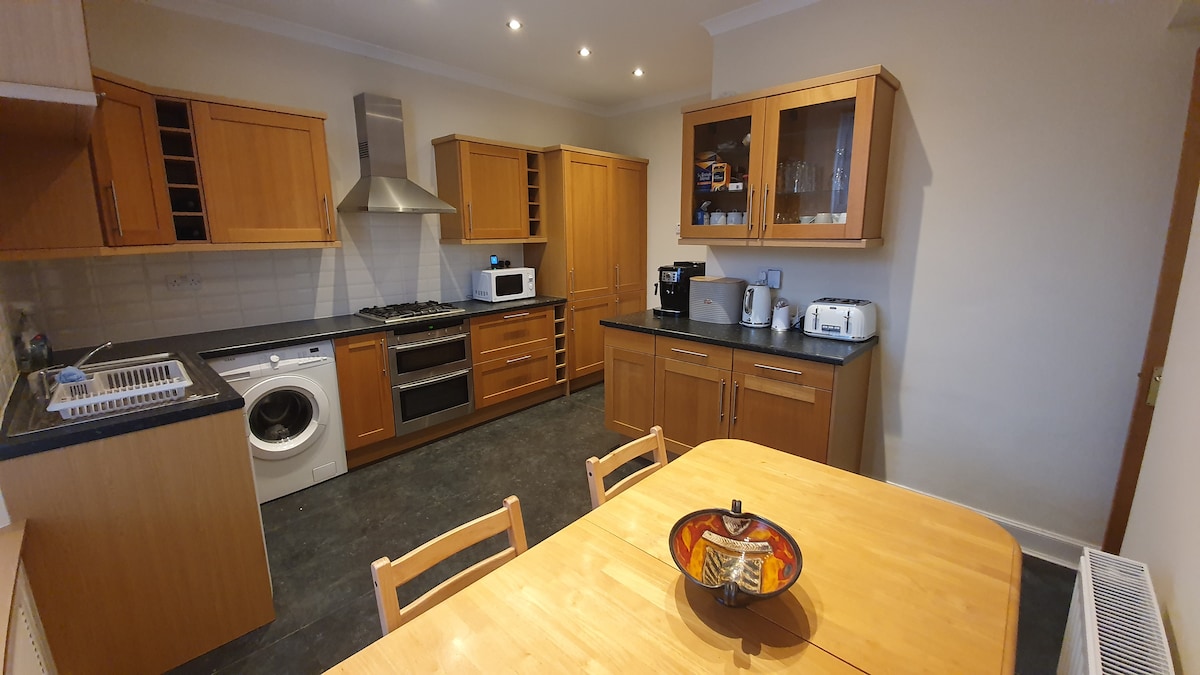 Casa adosada tranquila en el centro de Broughty Ferry a poca distancia a pie de todos los servicios locales. Los huéspedes dispondrán de toda la casa adosada, luminosa y espaciosa, que se encuentra en 3 niveles con acceso a un pequeño garaje y aparcamiento gratuito en la calle. La casa consta de un vestíbulo de entrada en la planta baja con acceso al garaje y un gran armario para guardar el equipaje. El armario está equipado con plancha y tabla de planchar, tendedero y aspiradora. Todos los dormitorios tienen televisores inteligentes de pared con Netflix.