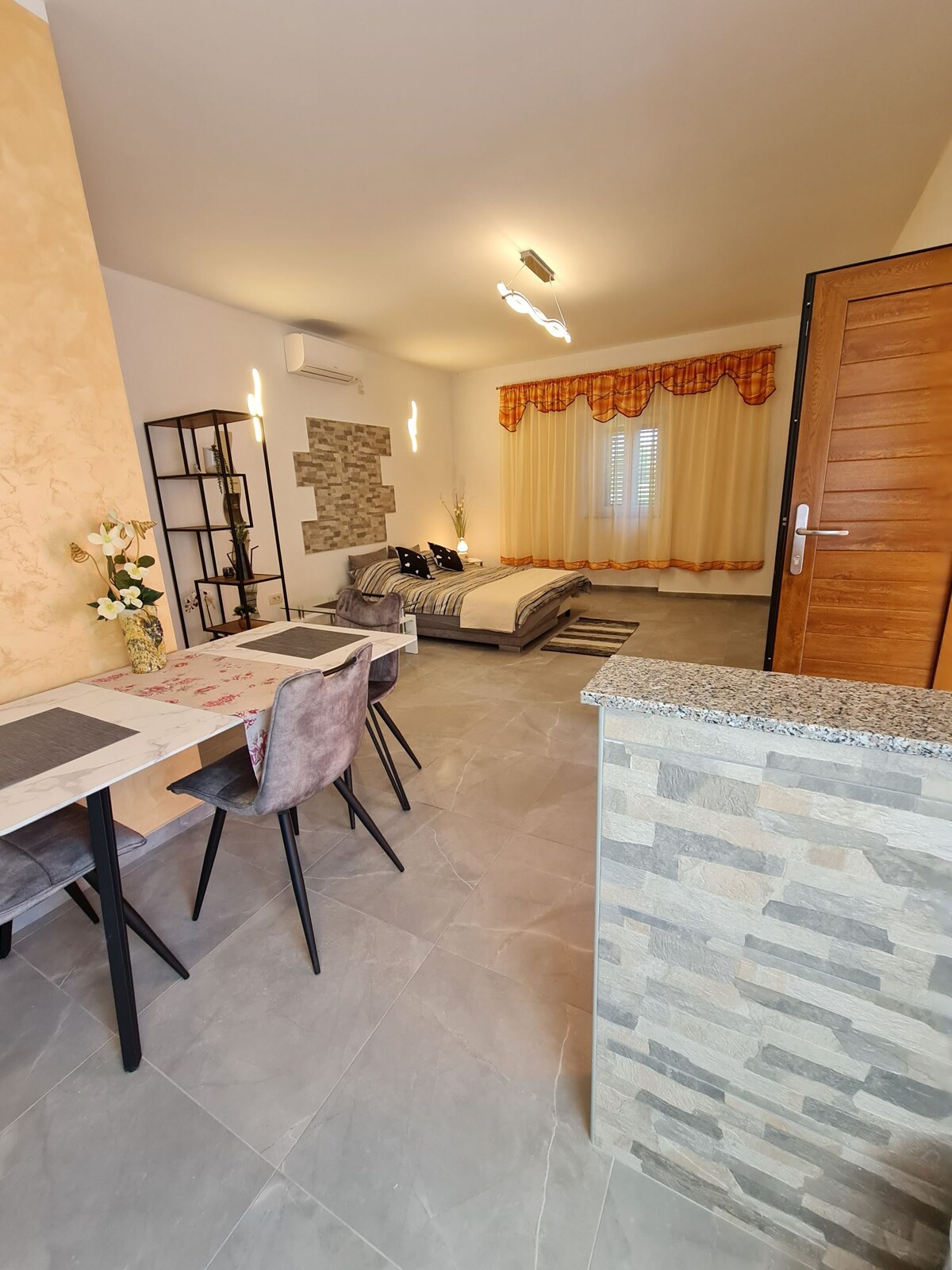 Nuestro apartamento tipo estudio se encuentra en el casco antiguo medieval de Mošćenice. Se encuentra en la planta baja de la pequeña casa de piedra de tres plantas y tiene 15 m2. Delante del apartamento hay una pequeña sala de estar ideal para tomar un café o una copa de vino. A la hermosa playa de guijarros se llega por unas escaleras que atraviesan el bosque. La ciudad es muy tranquila y silenciosa. Está rodeada de naturaleza y es ideal para escapar del estrés.