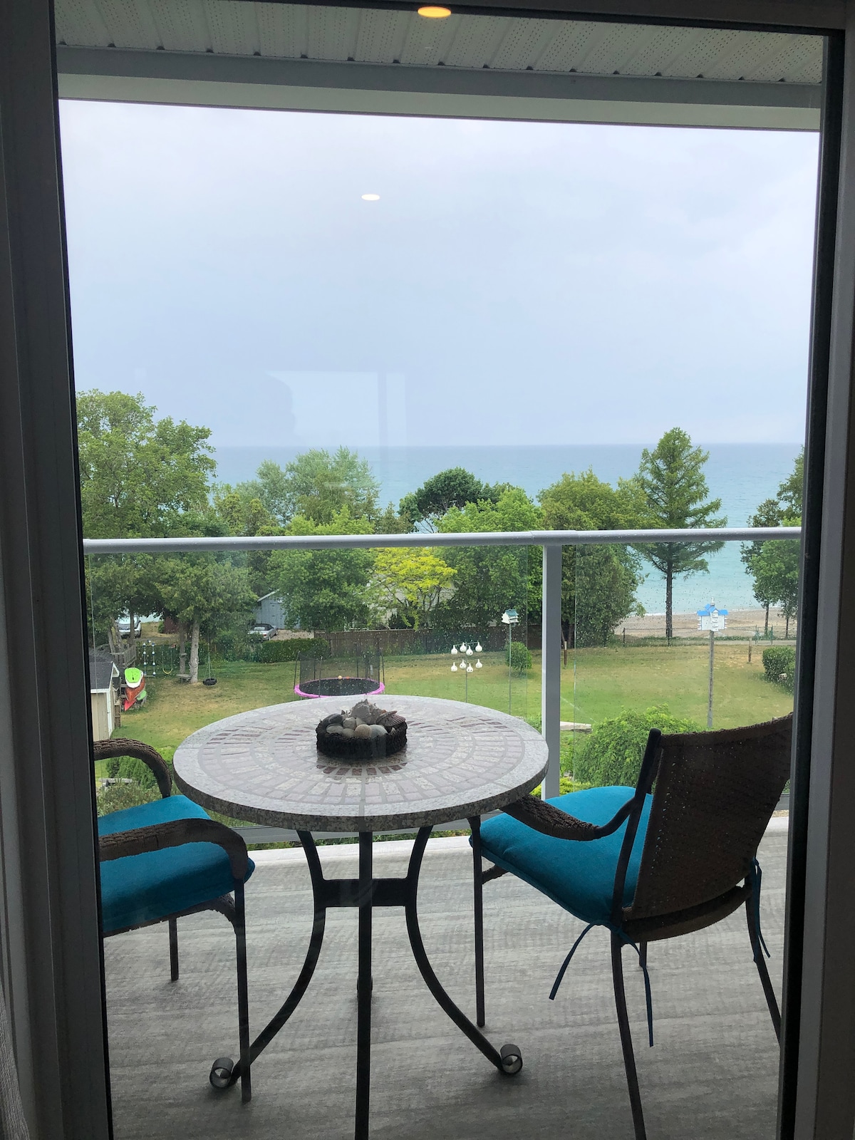 Este apartamento a nivel del suelo está al otro lado de la carretera del lago y a 20 minutos caminando del centro de Kincardine. Es ideal para parejas, aventureros solitarios, viajeros de negocios y amigos peludos (mascotas). El edificio es una casa de entrenamiento adjunta con terrazas con vistas al lago y fácil acceso a las costas rocosas para caminar. Está a muy poca distancia a pie de las playas de arena.