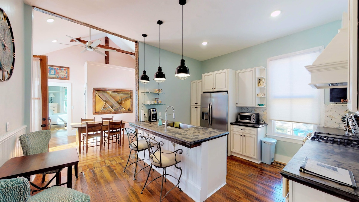 Una casa construida alrededor de 1920, donde encontrarás paz y una vida fácil. Con fácil acceso a restaurantes, la escena artística, lugares para bodas e historia, esta casa es el lugar perfecto para «hacer base» mientras exploras el viejo Wilmington. Una vivienda de una sola planta, con la cocina en el corazón de la misma, cuenta con suelos de pino en la parte original de la casa y de roble en la ampliación que se acaba de completar en 2019. Con un baño privado y una pequeña sala de estar en el dormitorio principal, ¡es el lugar perfecto para relajarse!