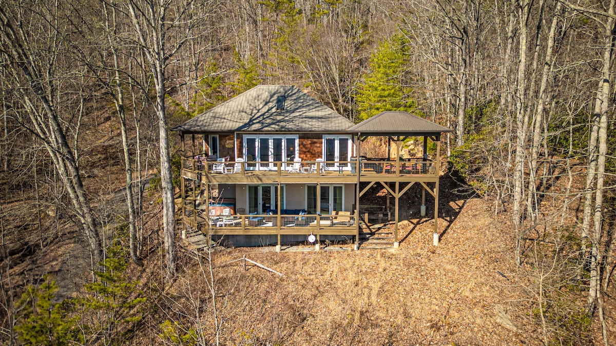 Esta casa personalizada, construida en 2020, es el lugar perfecto para relajarse. Ubicada junto a una carretera privada (no es necesario tener tracción en las 4 ruedas), se encuentra en 4,25 acres, con magníficas vistas a las Grandes Montañas Humeantes. Una vez allí, realmente te sientes alejado del mundo. Su moderno diseño escandinavo-japonés es único en la zona. Incluye: dormitorio principal, loft para dormir (futón tamaño queen y literas personalizadas Twin XL); cocina abierta/sala de estar, patios cubiertos y abiertos. A 10 minutos de Bryson City y Cherokee.