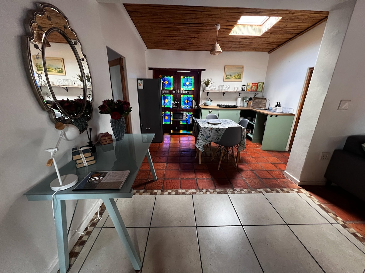 Un estudio familiar situado junto al río en uno de los barrios residenciales de Swellendam. El estudio cuenta con magníficas vistas al jardín y un enorme árbol de caucho, creando una experiencia tranquila. Tendrás wifi de alta velocidad y energía solar, perfecta para trabajar a distancia. ¿Quieres una sensación no tan urbana? Entonces este es el lugar para ti. El estudio se encuentra a solo 5 minutos a pie del supermercado/centro de la ciudad más cercano y a 13 minutos a pie del casco antiguo con pintorescos restaurantes, tiendas y cafeterías.