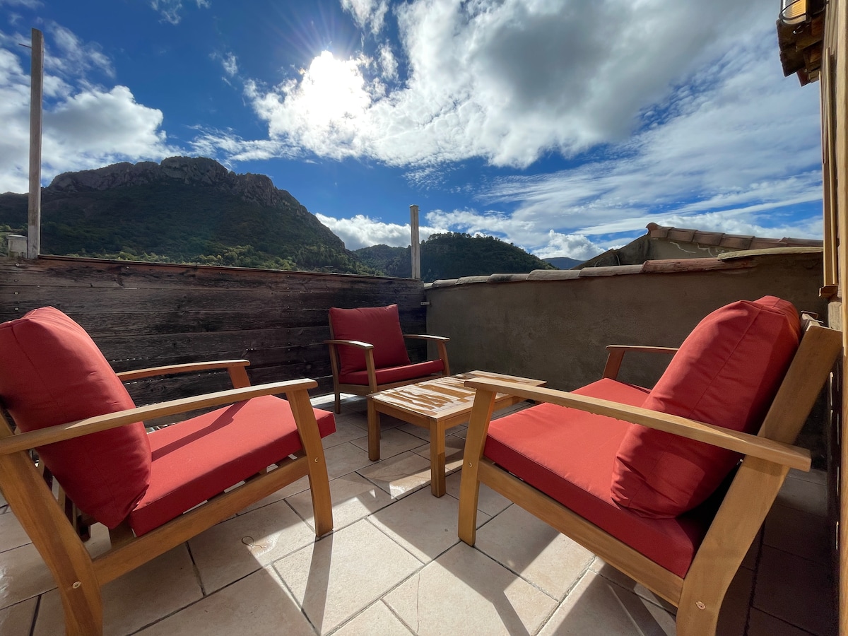 CASA DE PUEBLO para 2 6 personas. con TERRAZA de la AZOTEA "La Terrasse d 'Oléa" es una casa de ciudad de 3 niveles situada en el corazón del centro histórico de Buis les Baronnies. Su terraza en la azotea con vistas a las montañas es un lugar privilegiado para reponer energías. La casa puede alojar hasta 6 personas gracias a sus 2 camas dobles y 2 camas individuales. ¡Un alojamiento ideal para reunirse con familiares o amigos y descubrir los encantos de la Drôme Provençale!