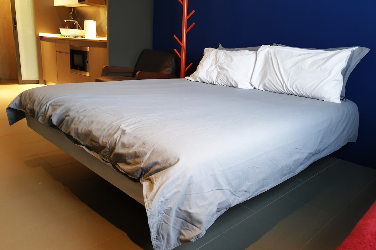 Este alojamiento único tiene personalidad propia. Con una cómoda cama tamaño king y una enorme estación de trabajo con vistas a KL. Tiene una cama de día con ventana y un gran sofá que también se puede convertir en cama. A poca distancia a pie de las estaciones de metro (Masjid Jamek), Bukit Bintang, Alor Food Street, Petaling Street, Central Market y muchas más atracciones. Esta unidad también viene con lavadora y secadora.