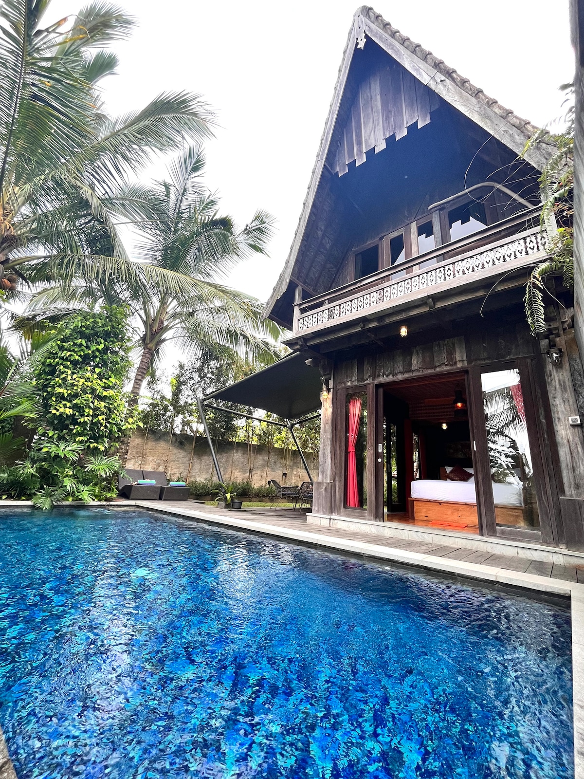 *Tenemos wifi increíble (50 Mbps ++) y 4 hermosas propiedades en el sitio. HAZ CLIC EN MI PERFIL PARA VER LAS OTRAS 3 CASAS EN CASO DE QUE ESTA ESTÉ OCUPADA DURANTE LAS FECHAS DESEADAS* ¿Alguna vez has dormido en una obra de arte? Desde los artesanos de Java hasta los agricultores del norte de Bali, este impresionante Gladak tallado a mano de 50 años descansa ahora en Sunset Sala. Hecho completamente de madera de teca, no se necesitaron clavos para la reconstrucción de esta casa única: sus paredes talladas a mano se encajan hábilmente.