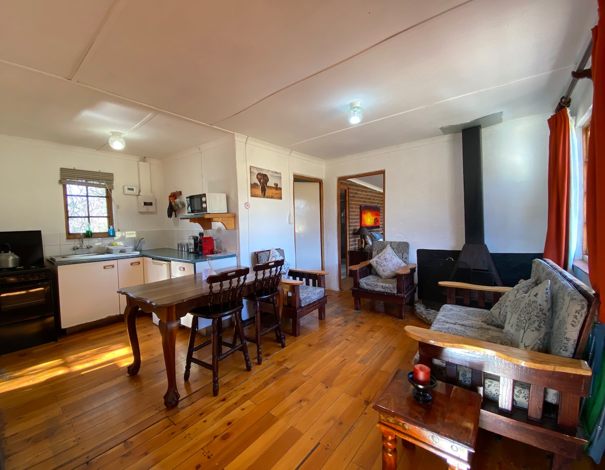 Un espacio encantador para acurrucarse en el sofá con una copa de vino mientras disfrutas del cálido resplandor de las luces de hadas. O disfruta de una taza de té en el patio mientras disfrutas de la serena vista al jardín del campo. Por la noche, disfruta de un braai bajo las estrellas y las luces de hadas. Braai (barbacoa) al aire libre en la puerta de tu patio. Esta encantadora casa de campo es independiente para una escapada tranquila y reparadora o úsala como base para todas las cosas en y alrededor de Underberg y Himeville.