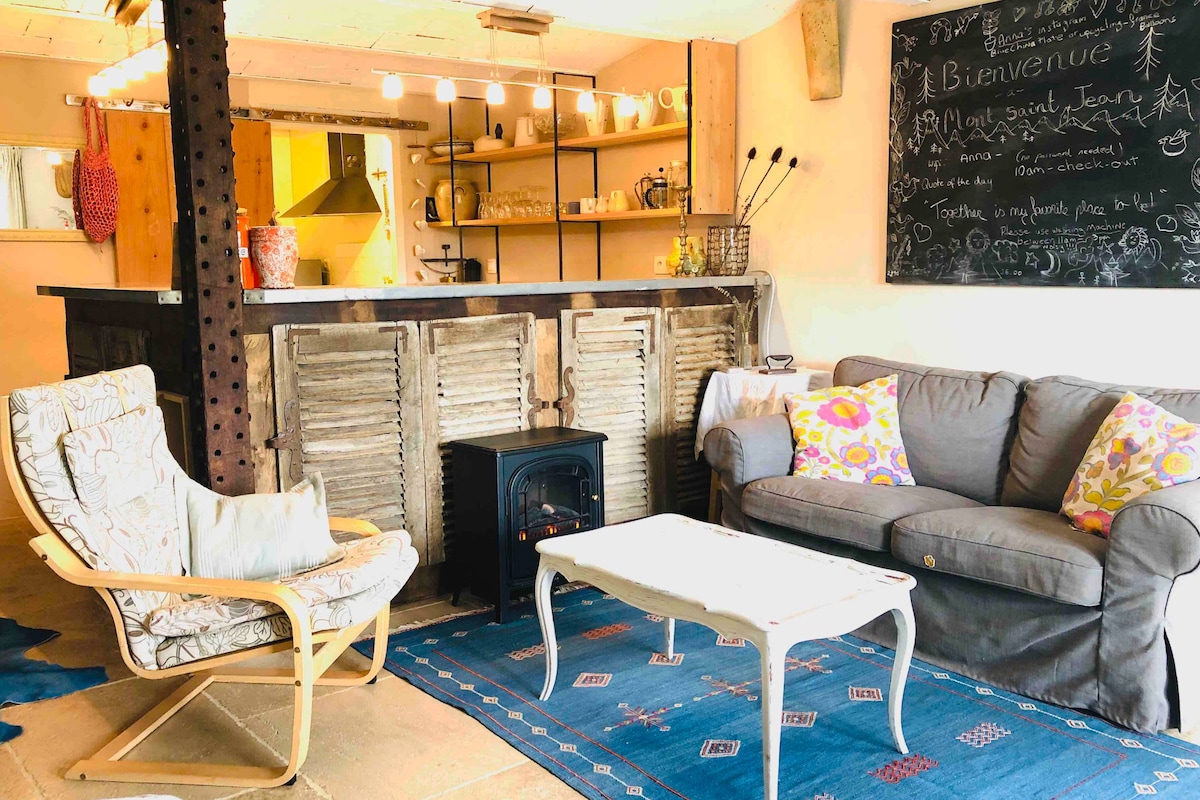 Vida fácil en un luminoso apartamento de estilo estudio de planta baja de planta baja. Capacidad para 2 personas. La sala de estar cuenta con una gran terraza de madera, un quemador de madera eléctrico para noches acogedoras y calefacción por suelo radiante con vistas a un viñedo. A la misma distancia entre Beaune y Dijon, (35-40 minutos) y con fácil acceso a la A6, Mont St Jean está situado en la región de Auxois. Wifi rápido
