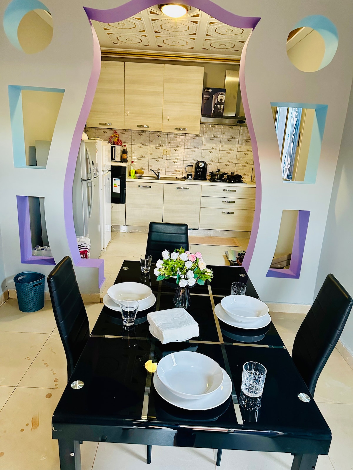 VILLA MEUBLE HAUT STANDING - 2 chambres climatisées - 2 douche intérieur eau 🚿 chaude /froide -réserve d’eau de 2000 L - salon moderne climatisée & minimaliste - Tele Smart UHD ( Netflix , YouTube …) - wifi gratuit - cuisine équipée - service de ménage 🧹