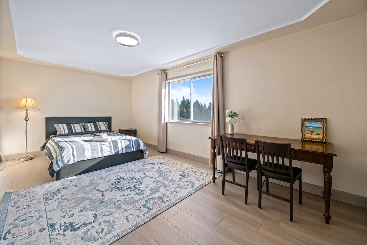 Your perfect home away from home! This cosy suite features air conditioning, a comfortable king-sized bed, a dedicated work area, an in-unit washer/dryer, and free parking. Located in historic and picturesque Queens Park, one of the Top 10 neighbourhoods in the Lower Mainland, you’ll enjoy tree-lined streets, heritage homes, and a welcoming community. Despite the peaceful setting, it’s incredibly convenient: just 1 minute to Bus Stop 105 and 10 minutes to Columbia SkyTrain, making transit easy.
