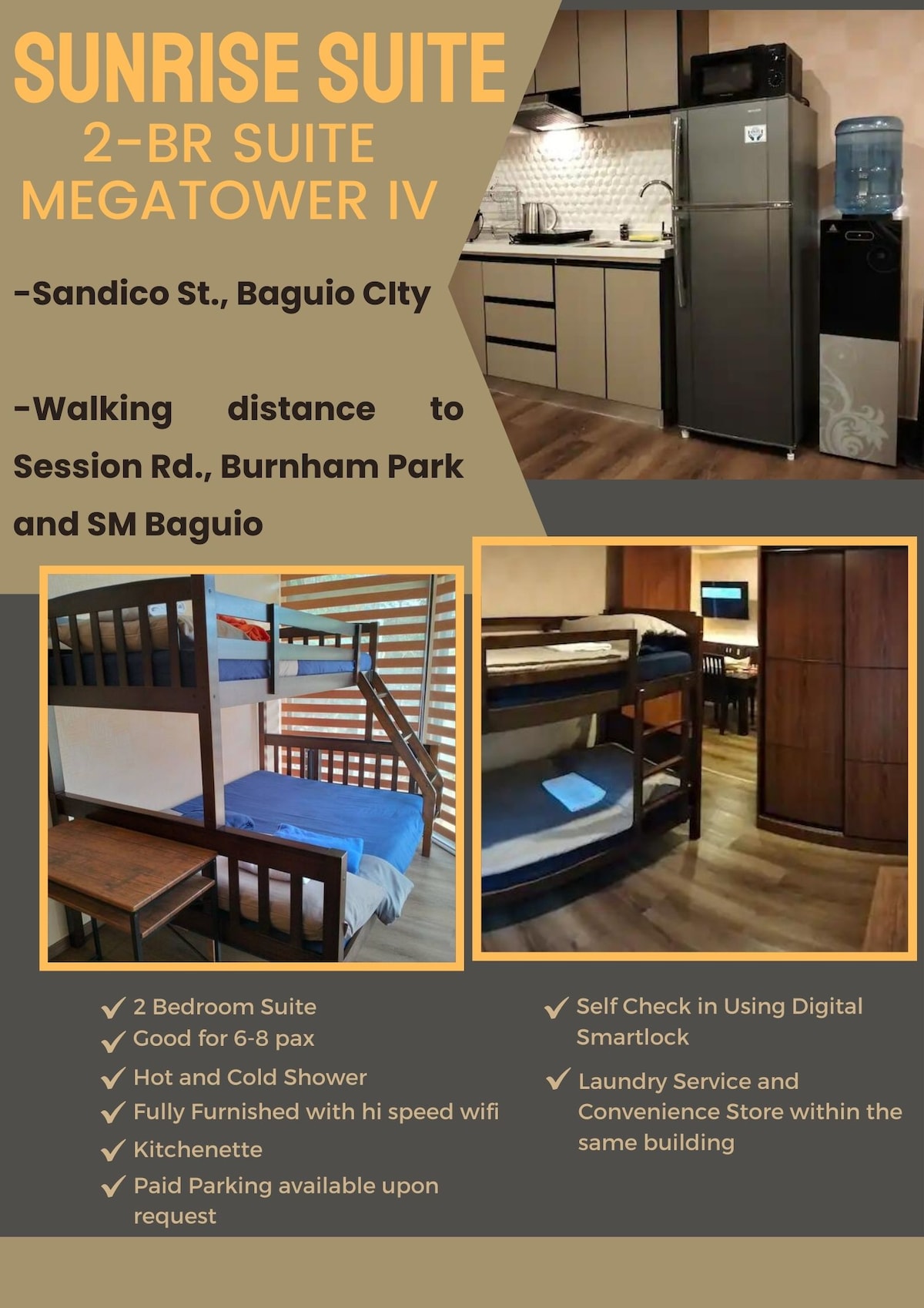 Nuestra unidad está situada en el corazón de la ciudad de Baguio. Puedes explorar atracciones como la catedral de 📍Baguio, SM City Baguio, Session Road, Burnham Park, el mercado nocturno y lugares de interés cercanos. Es una unidad de condominio tipo bachelor totalmente amueblada con un acogedor balcón que ofrece un lugar perfecto para tomar el café por la mañana. Viene equipado con electrodomésticos, incluyendo utensilios de cocina, vajilla y ropa de cama, lo que garantiza que tengas todo lo necesario para que tu estancia sea lo más cómoda posible.